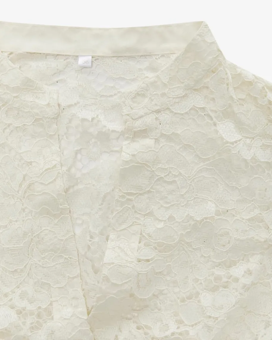 Maria Dirndlbluse für Damen von Giacomelli Trachten in Creme. Dieses Modellbesticht durch die florale Spitzen-Aufmachung, die zusammen mit den Puffärmelnfür einen romantischen Charakter sorgt, während die Knöpfe in Perlmutt-Optik denLook elegant abrunden.
