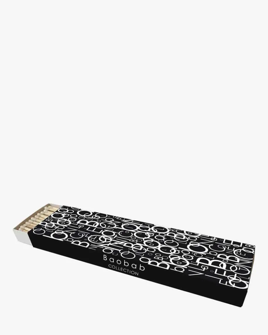 Matches Letters Streichhölzer von Baobab in Schwarz und Weiß. DieStreichholzschachtel Letters ist mit den Buchstaben der Marke als sehrgrafischem Druck illustriert. Mit ihrem Schwarz-Weiß-Design wird diese Schachtelzu einem eigenständigen Dekorationsobjekt und zu einem unentbehrlichenAccessoire zum Anzünden von Kerzen aller Größen.