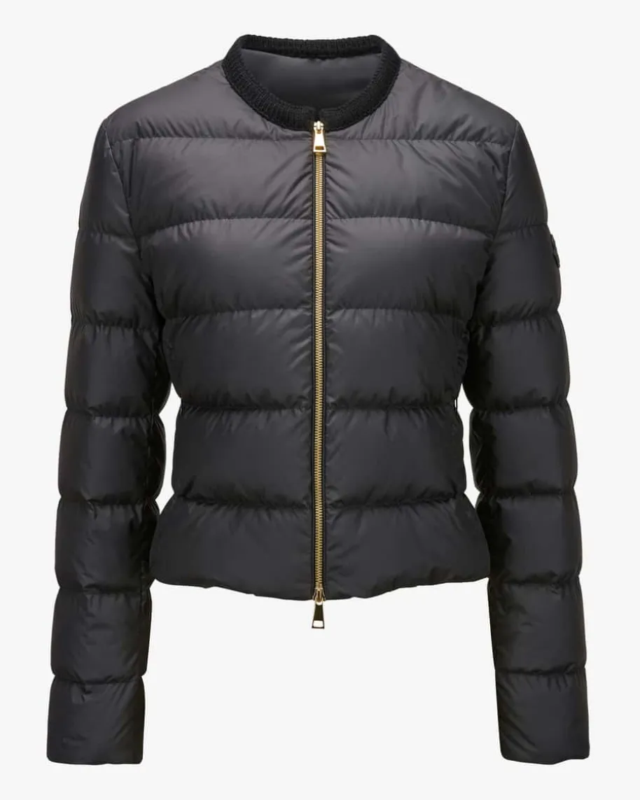 Mauvezin Daunenjacke für Damen von Moncler in Schwarz. Denkt man an hochwertige,warme Daunenjacken, kommt einem unweigerlich das italienische TraditionslabelMoncler in den Sinn. Auch mit diesem Modell präsentiert das Label dank derhochwertigen Daunen-Feder-Füllung einen optimalen Begleiter für dieÜbergangszeit, während die tonige Strickborte und die schmale Passform einenmodischen Fashion-Favoriten kreiert.