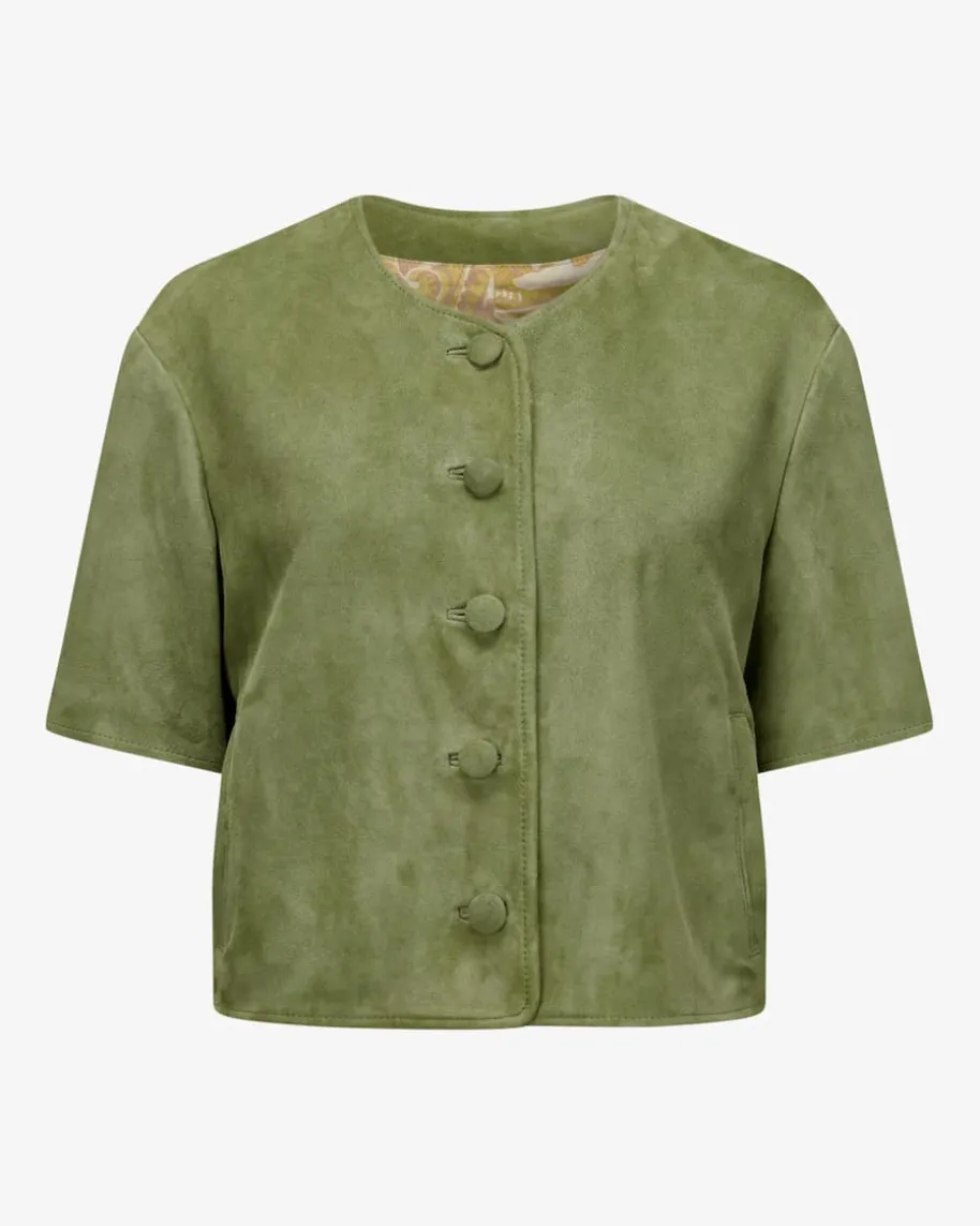 Mavie Trachten-Lederjacke für Damen von Meindl in Kaktus. Lederhandwerk ausBayern – Bereits 1693 wurden bei Meindl die ersten Produkte aus Leder gefertigtund seit nun mehr als 70 Jahren kreiert das Traditionshaus hochwertigeLederwaren, die von Kennern meist ein Leben lang geschätzt werden. DiesesKurzarm-Modell begeistert dank der angenehmen Veloursleder-Qualität sowie demInnenfutter im modischen Paisley-Dessin, während der weite Schnitt den Lookoptimal untermalt und somit traditionelle Trachtenlooks modern komplettiert.