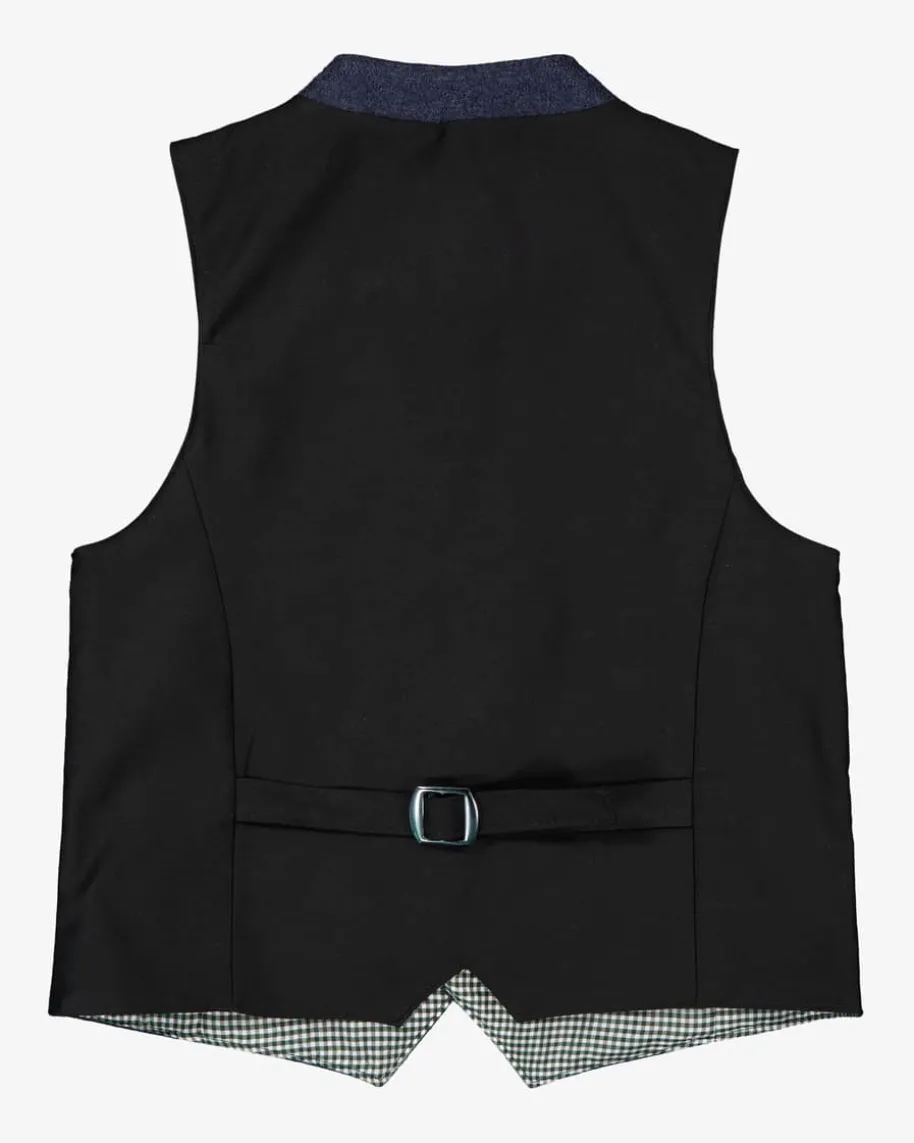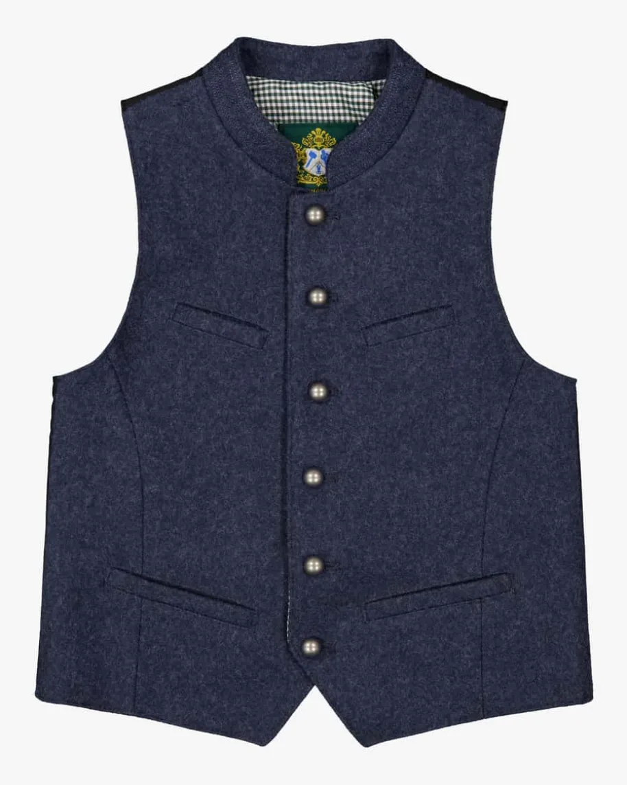 Maxi Trachtenweste für Jungen von Hammerschmid in Dunkelblau und Schwarz. DieWeste aus hochwertigem Woll-Mix überzeugt durch die traditionelle Aufmachung mitklassischen Details und ergänzt stilvoll Trachten-Looks für die Kleinen.