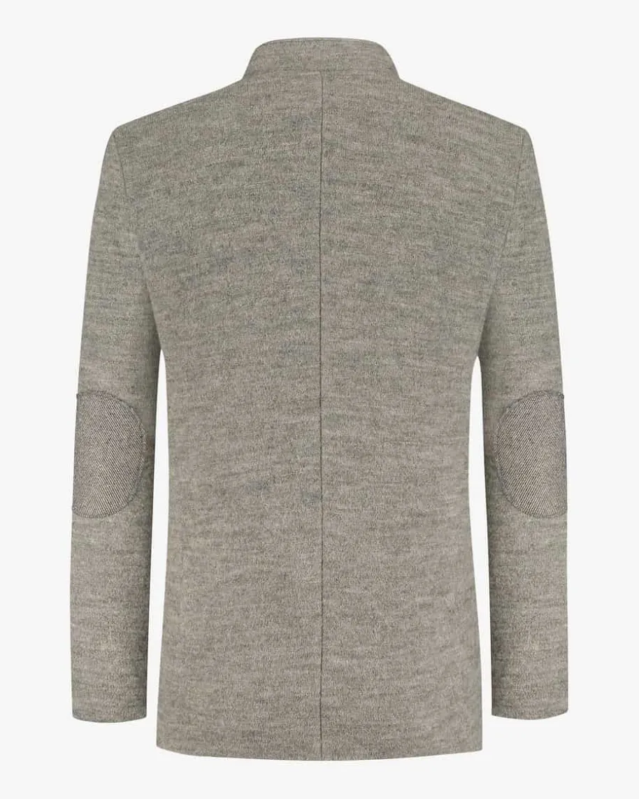 Maxl Trachen-Jacke für Herren von Stapf in Grau. Während der gestrickteSchurwoll-Baumwoll-Mix traditionelle Akzente setzt, verleihen die Zierriegel undEllbogen-Patches einen legeren Touch. Stilvolle Hornknöpfe vollenden dasGesamtbild gekonnt.