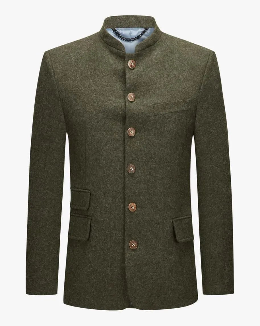 Maxvorstadt Trachten-Janker für Herren von Windsor in Oliv. Schlichte Eleganzgepaart mit traditionellen Details wie den rustikalen Hornknöpfen schaffen einstilvolles Gesamtbild, während die Loden-Qualität mit zeitlosem Charme punktet.Zudem lässt sich dieser Janker ideal zur Lederhose kombinieren.