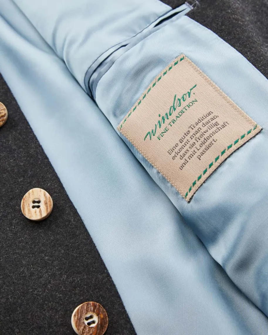Maxvorstadt Trachten-Janker Shaped Fit für Herren von Windsor in Anthrazit undGrün. Schlichte Eleganz gepaart mit traditionellen Details wie den rustikalenHornknöpfen schaffen ein stilvolles Gesamtbild, während die weiche Schurwoll-Qualität mit zeitlosem Charme punktet. Zudem lässt sich dieser Janker ideal zurLederhose kombinieren.