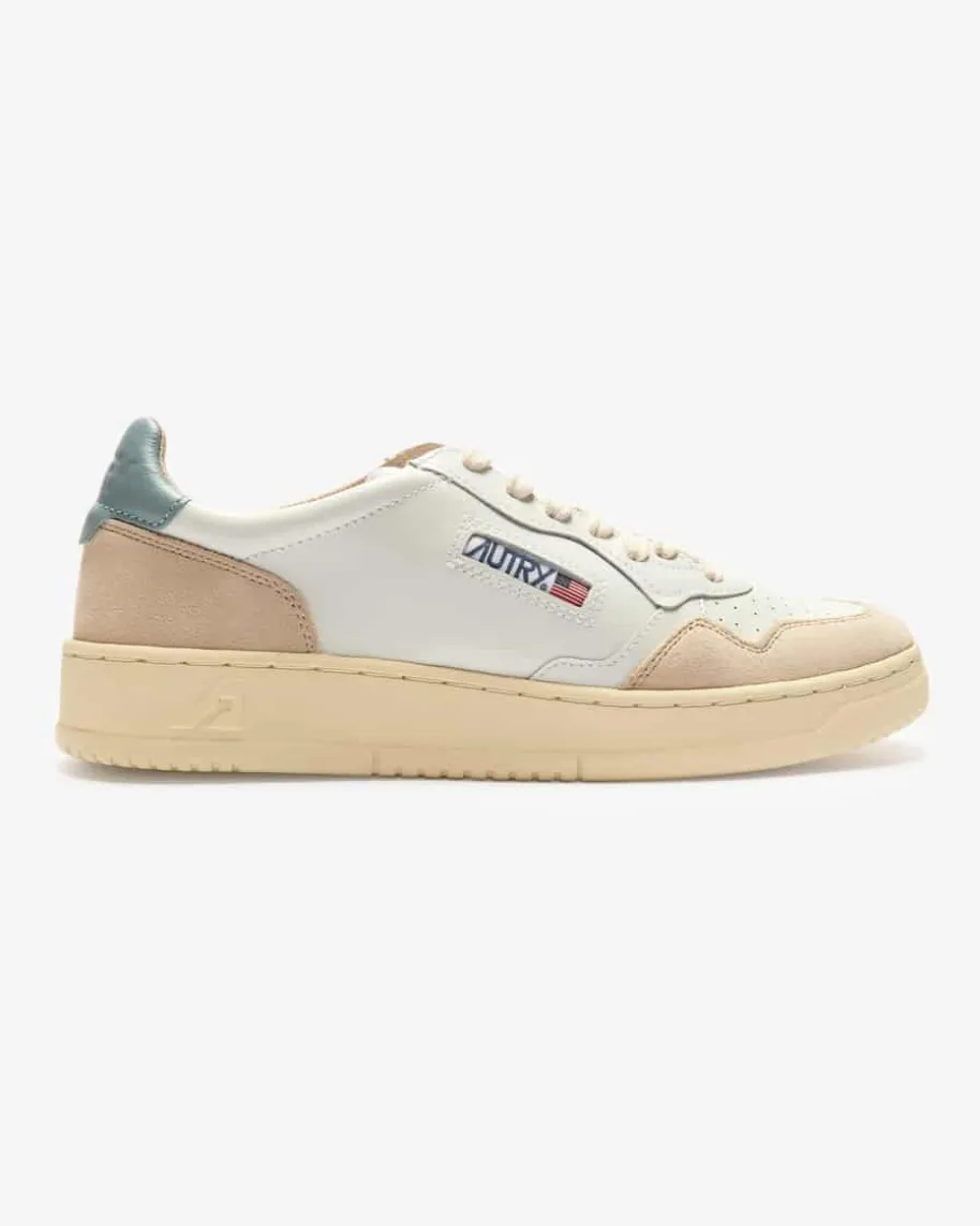 Medalist Low Sneaker für Herren von Autry in Weiß, Creme und Blaugrau. Das 1982in Dallas gegründet Label etablierte sich zu einem der beliebtesten Sneaker-Marken der 1980er Jahre und feierte 2019 sein Comeback. Auch dieses Modell aushochwertigem Leder präsentiert sich in zeitlos-sportivem Look. Während diecleane Aufmachung mit perforierten Einsätzen einen kombistarken Begleiterschafft, rundet die amerikanische Flaggen-Applikation, welche als dasMarkenzeichen des Labels gilt, das Gesamtbild charakteristisch ab. Zugleichsorgt die Frottee-Innenseite für angenehmen Tragekomfort.