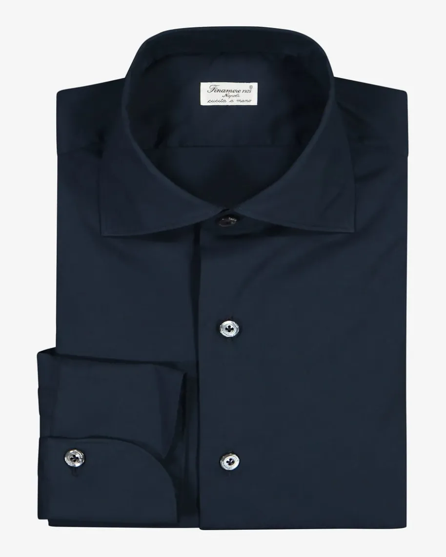Businesshemd Slim Stretch für Herren von Finamore 1925 in Navy.Handgefertigt in Italien- Das taillierte Hemd in angenehmer Stretch Qualität überzeugt dankklassischenDetails und perlmuttfarbenen Knöpfen mit schlichterAufmachung.