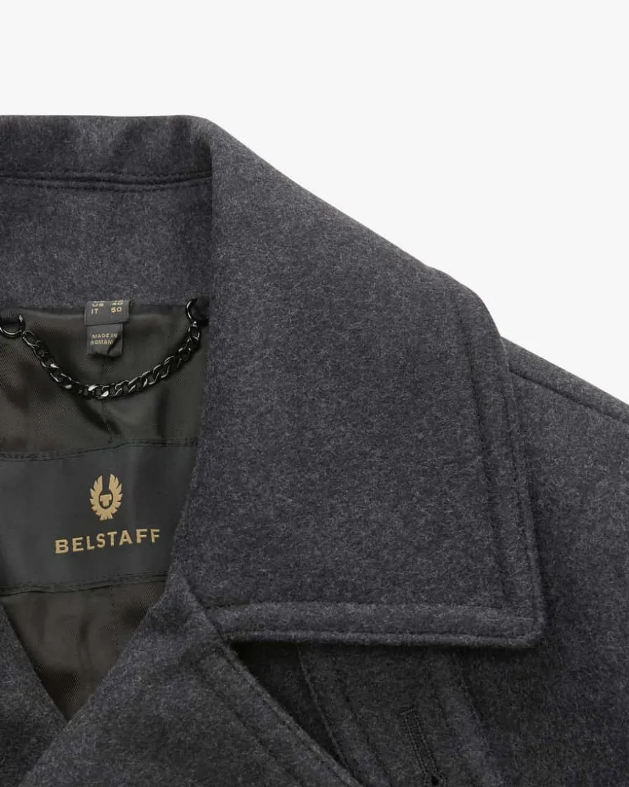 Milford Cabanjacke für Herren von Belstaff in Anthrazit. Das doppelreihige,gefütterte Modell präsentiert sich in klassisch-eleganter Aufmachung, welche diehochwertige Woll-Verarbeitung gekonnt in Szene setzt. Klassische Details rundendas maskuline Design perfekt ab und kreieren einen wärmenden Begleiter.