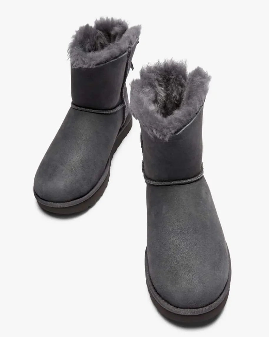 Mini Bailey Bow Boots für Damen von UGG in Blaugrau. Leicht, weich und warm -DieStiefel des Kult-Labels begeistern durch das wasser- sowie schmutzabweisendeLammleder. Dank charakteristischem Lammfell-Futter wird für die nötige Wärmegesorgt, während die Treadlite-Laufsohle mit rutschfestem Profil sicheren Haltverspricht.