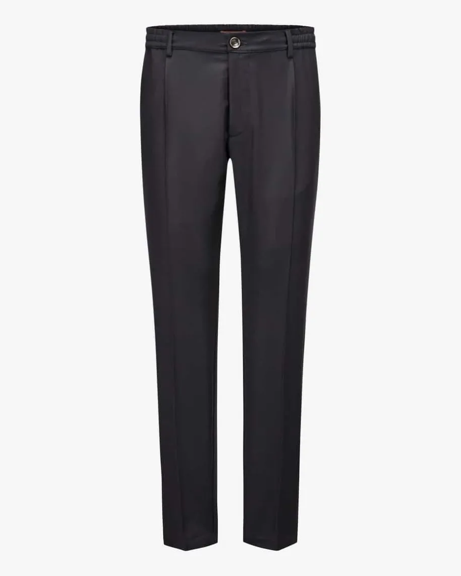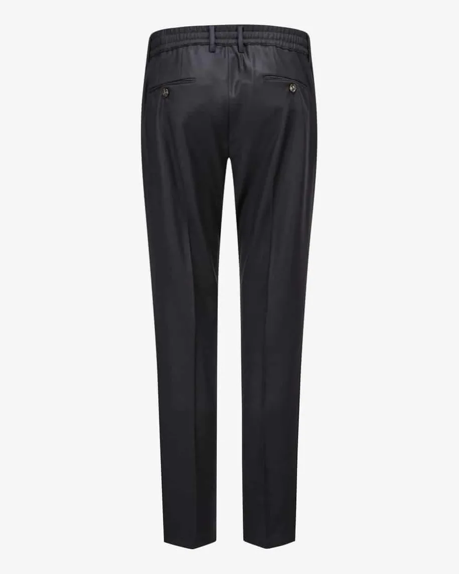 Mitte Wollhose für Herren von Cruna in Schwarz. Das verkürzte Modell bestichtdurch den weichen Woll-Cashmere-Mix mit innenliegendem Tunnelzug als angenehmerBegleiter, welcher durch die Bundfalten und klassische Details einen stilvollenTouch erhält.