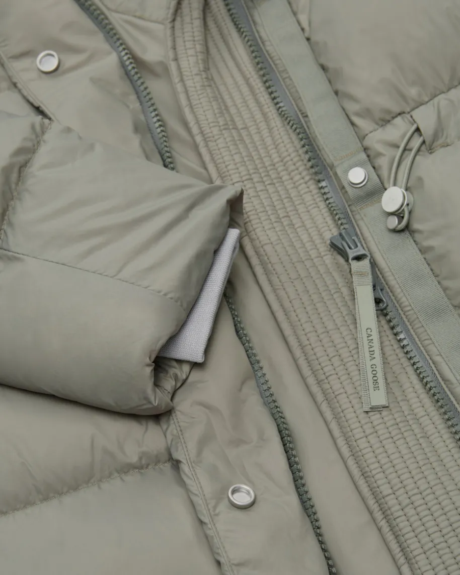 Montgomery Daunenmantel für Damen von Canada Goose in Salbei. ZweckmäßigesDesign, orientiert an den rauen Bedingungen der Arktis, ist der Grundstein füralle Kollektionen von Canada Goose. Auch dieses Modell in sportiver Stepp-Optikbegeistert dank hochwertiger und optimal isolierender Daunen-Feder-Füllung sowiedem hochgeschlossenen Kragen als wärmender Outdoor-Begleiter, welcher durch denTaillenzug individuelle Tragemöglichkeiten verspricht.