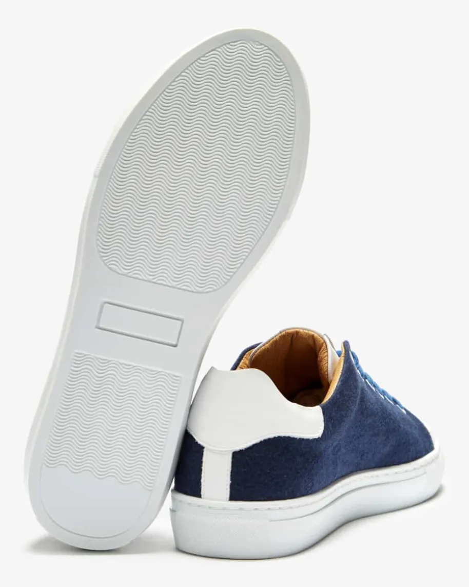 Moritz Trachten-Sneaker für Herren von Xaver Luis in Navy und Weiß. Das Modellpräsentiert sich in sportiver und zugleich traditioneller Aufmachung, währendLogo-Details, die Loden-Optik aus feinster Merinowolle sowie die Leder-Akzenteden Look perfekt vollenden.