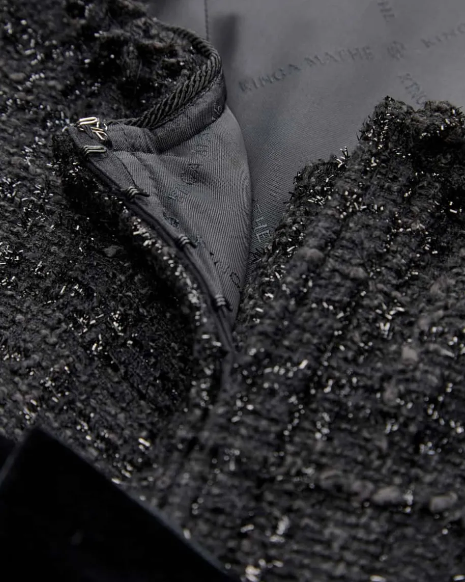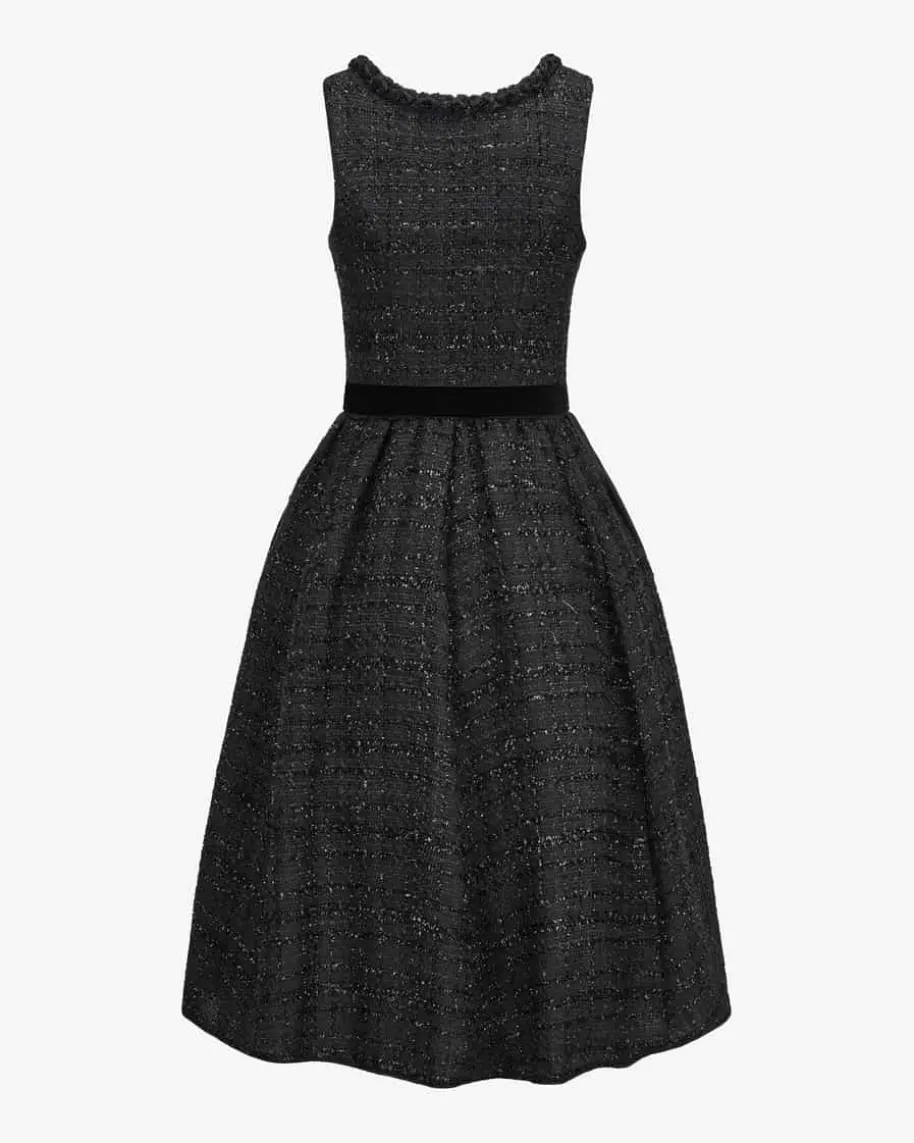 Mostar Midi-Dirndl mit Schürze für Damen von Kinga Mathe in Schwarz.Mit Liebe zum Detail entwirft das deutsche Label aufwendige Trachten-Kreationenmit dem gewissen Etwas und überzeugt mit erlesener Stoffauswahl sowie kreativeDesigns. Dieses Modell besticht mit edlem Mieder in Bouclé-Aufmachung, währenddas Allover-Karo-Dessin in Verbindung mit dem samtenen Schürzenband einemodische Note verleiht.