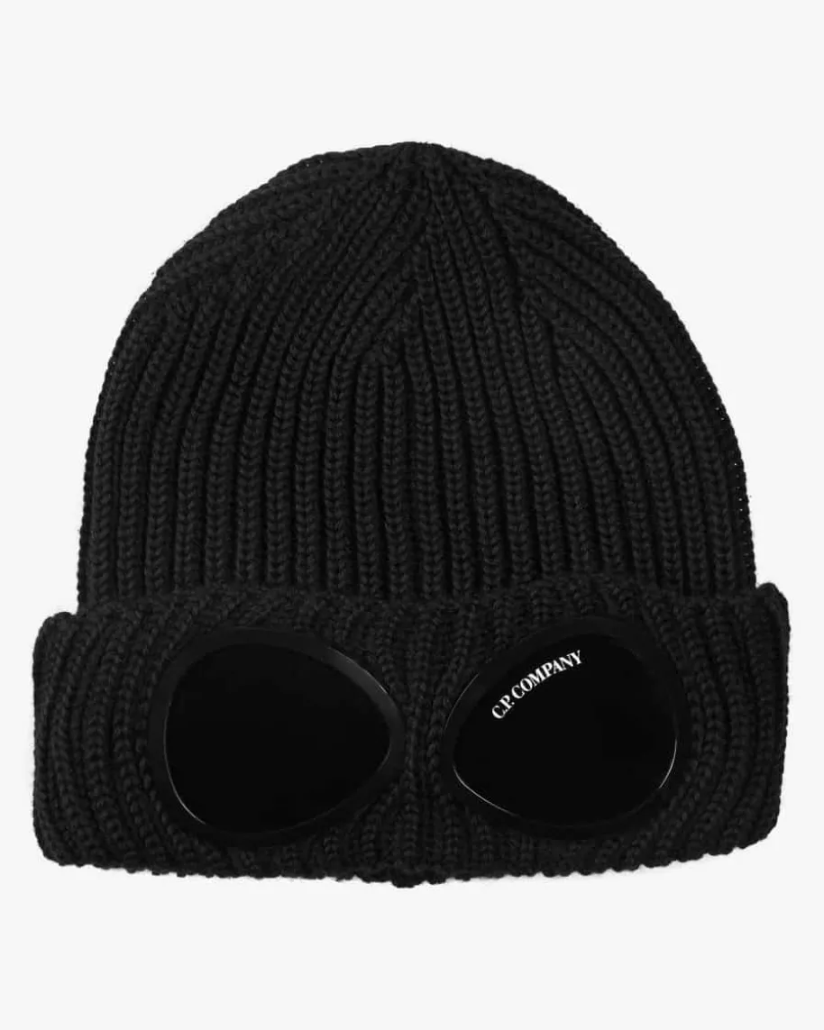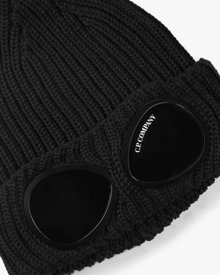 Mütze für Herren von C.P. Company in Schwarz. Das Modell besticht mit breiterRippstrick-Qualität und raffiniert integrierten Sonnengläsern, während dieweiche Merinowolle angenehmen Griff verspricht.
