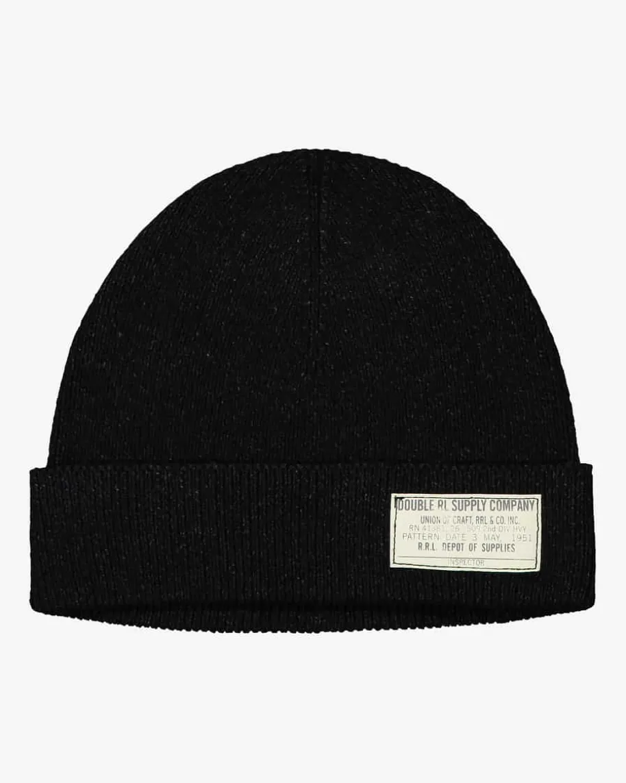 Mütze für Herren von RRL in Schwarz. Mit feinem Strickmuster präsentiert sich das Modell aus hochwertiger Baumwolle. Die kontrastierende Plakette auf dem breiten Umschlag rundet den minimalistischen Look gekonnt ab.