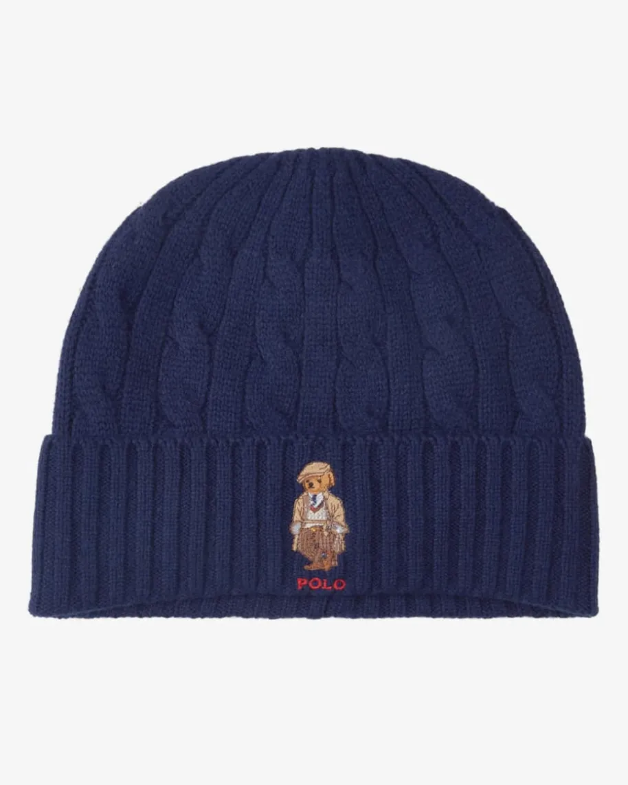 Mütze für Herren von Polo Ralph Lauren in Navy. Das Modell besticht dankhochwertigem und leichtem Woll-Cashmere-Mix sowie dem Zopfstrick-Design miteiner weichen Haptik und modernen Optik, während die charmante Polobär-Stickereidem Look einen besonderen Charakter verleiht.