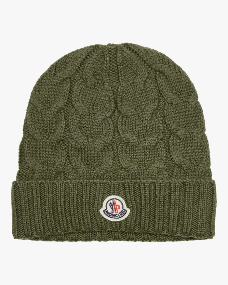 Mütze für Kinder von Moncler Enfant in Oliv. Das Modell aus angenehmerSchurwoll-Qualität avanciert durch das raffinierte Zopf-Muster sowie dem softenTragegefühl zum modischen Begleiter. Die labeltypische Logo-Applikation setztzudem besondere Akzente.