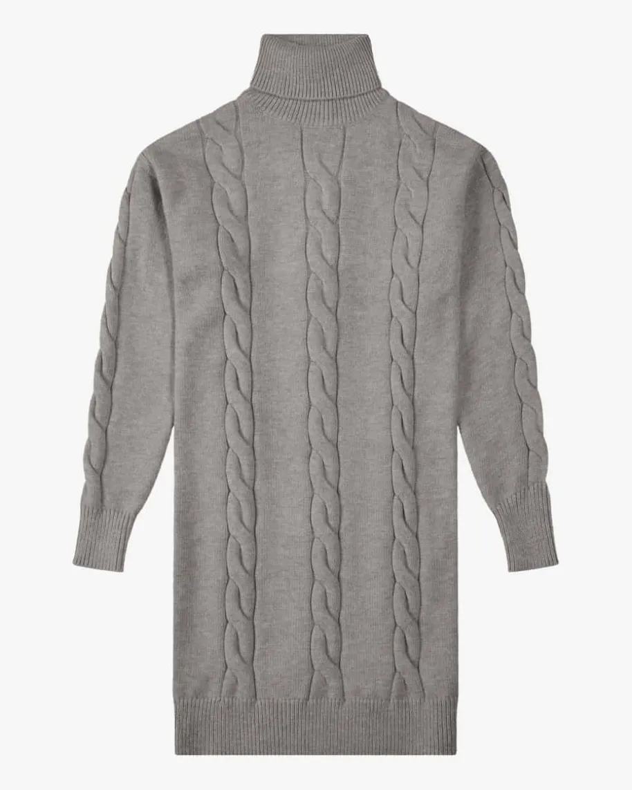 Nala Strickkleid für Mädchen von Elsy in Grau. Italienisches Label für exklusiveKindermode – stilvoll und detailverliebt. Dieses Modell überzeugt mit weicherHaptik und modernem Zopfstrick-Details, während der Rollkragen Ihre Kleineangenehm warmhält.