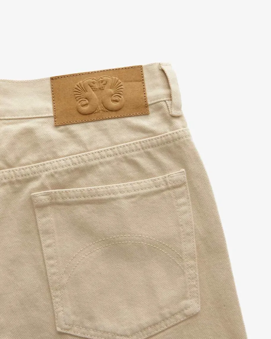 Nariida Paso Jeans für Damen von Blazé Milano in Beige. Das Modell überzeugt mitrobuster Denim-Qualität, während die kupferfarbenen Nieten in Kombination mitdem goldfarbenen Knopf einen angesagten Jeans-Favoriten kreiert. Logo-Detailssowie die charakteristische Logo-Stickerei runden den Look labeltypisch ab.