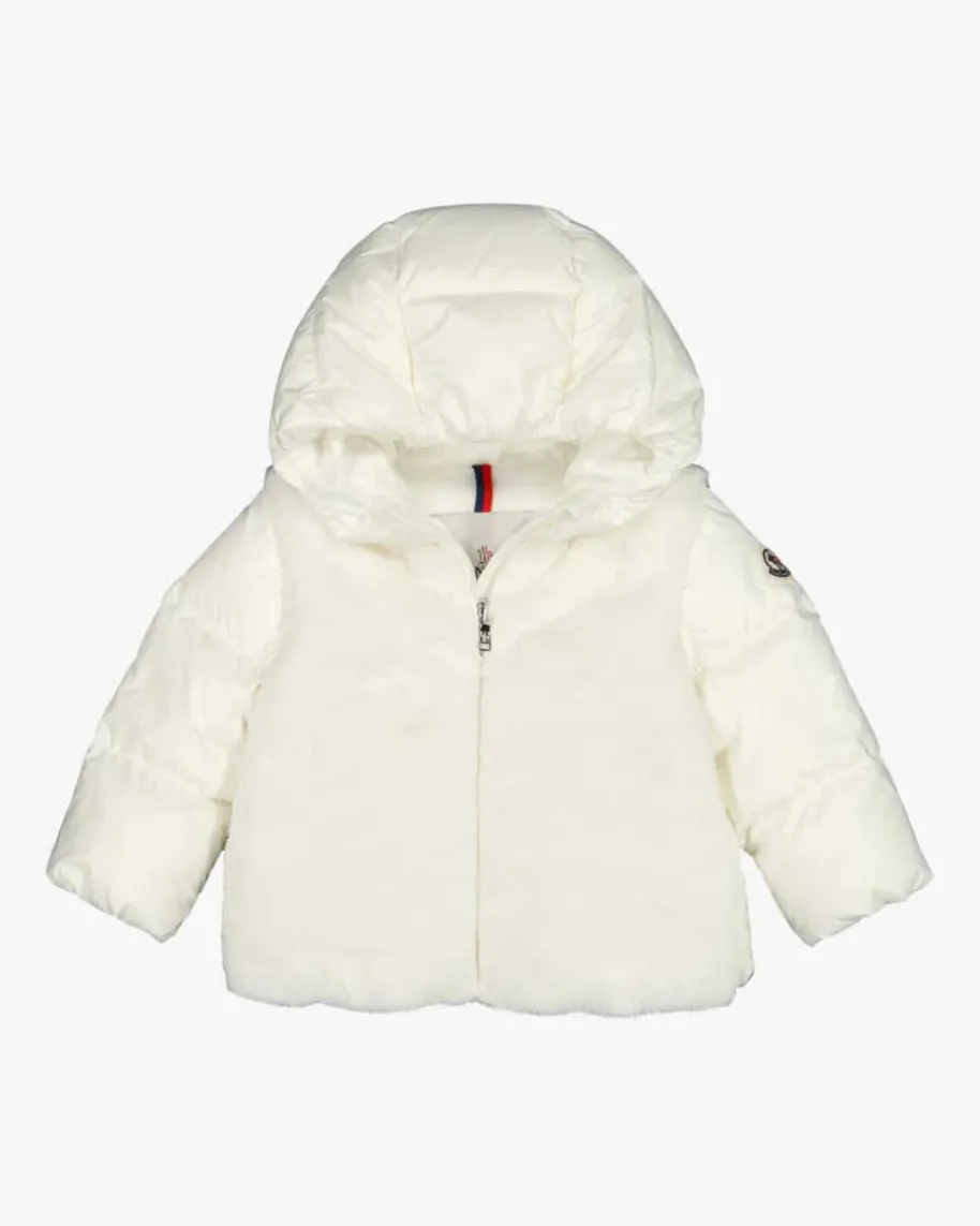 Natas Daunenjacke für Babys von Moncler Enfant in Weiß. Das dezent changierendeStepp-Muster sowie die weiche Fell-Optik verleihen der Jacke einen kuscheligenCharakter und verwandeln den Style in einen echten Blickfang. VerschließbareEingriff-Taschen sowie elastische Säume verleihen dem Modell den letztenSchliff.