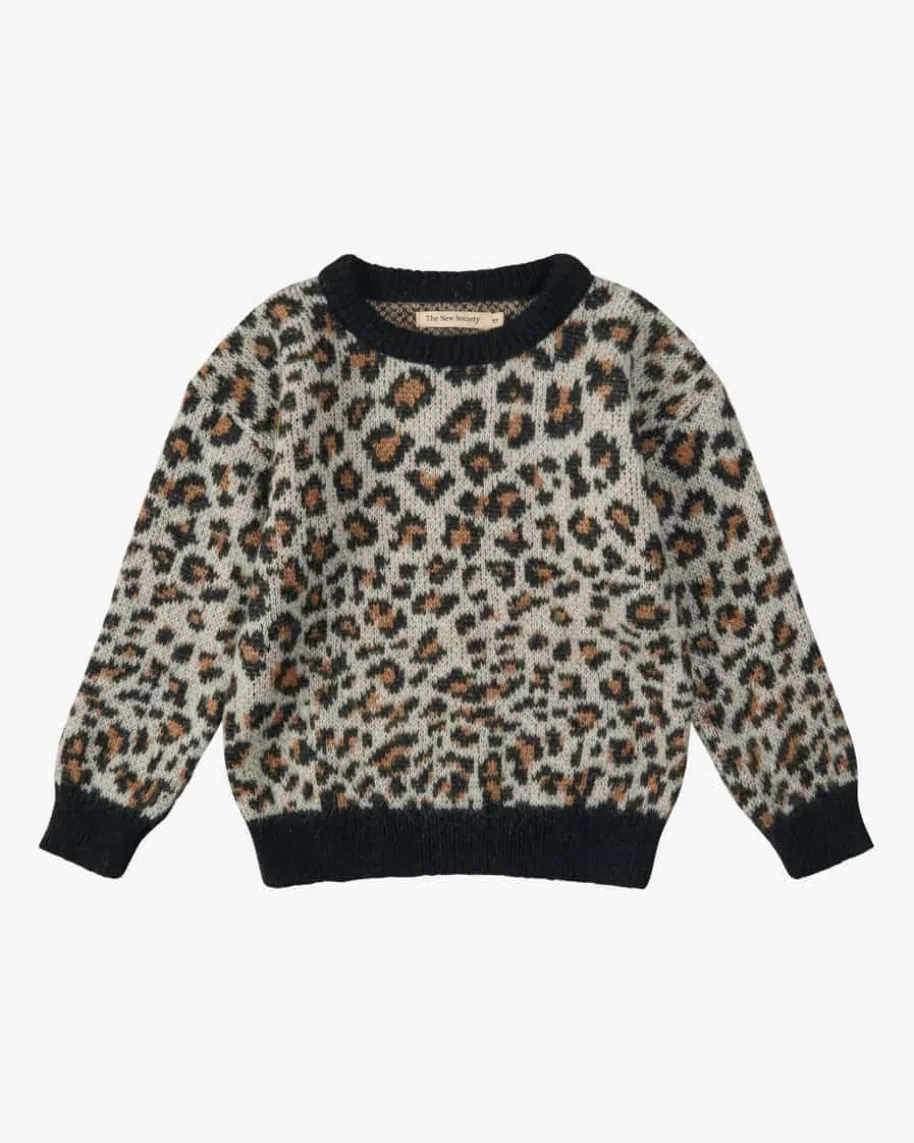 Nella Pullover für Mädchen von The New Society in Schwarz, Off-White und Beige.Das Modell überzeugt mit weichem Woll-Mix, der angenehmen Tragekomfortgarantiert. Das modische Leo-Muster rundet den Look harmonisch ab.
