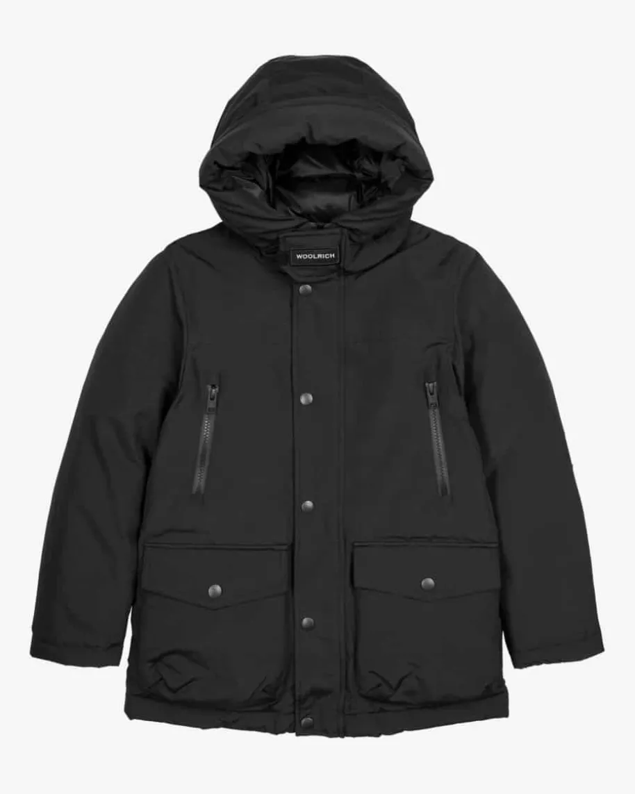 New Ramar Arctic Daunenparka für Jungen von Woolrich in Schwarz. Das Label stehtallgegenwärtig für Qualität, Funktionalität und Tradition der Extraklasse. DieParka-Modelle sind mit einer wärmenden Daunen-Feder-Füllung ausgestattet undhält Ihr Kind auch an kalten Tagen angenehm warm. Zugleich runden vielfältigeTaschen den legeren Look gekonnt ab.