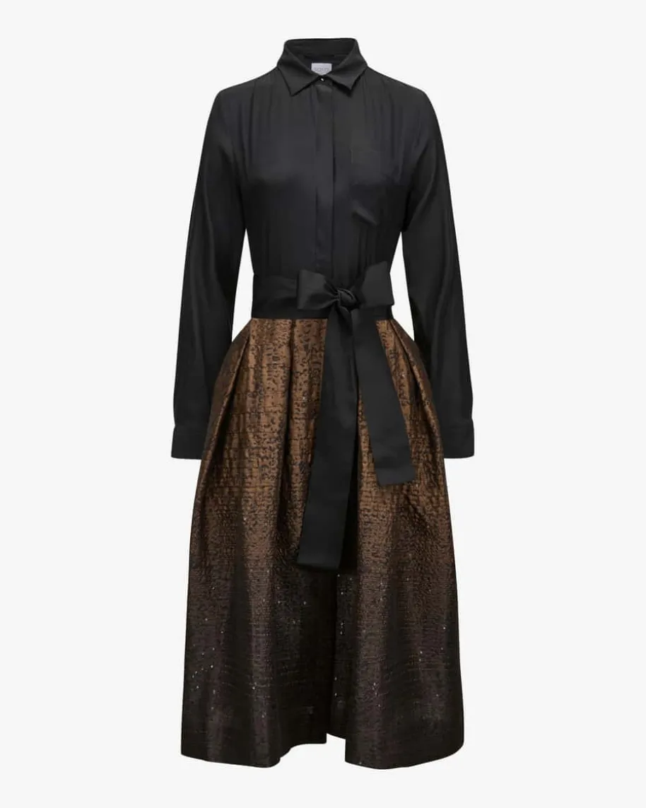 Nidina Kleid für Damen von Sara Roka in Schwarz und Braun. Feminine Designs mitdem gewissen Etwas. Der Ursprung der Kollektionen findet sich im klassischenHerren-Hemd wieder, von dem die typischen Blusenkleider inspiriert sind. Auchdieses Modell präsentiert sich mit raffiniertem Material-Mix und edlem Degradée-Effekt. Das abnehmbare Taillenband zaubert eine feminine Silhouette und rundetden einzigartigen Look gekonnt ab.