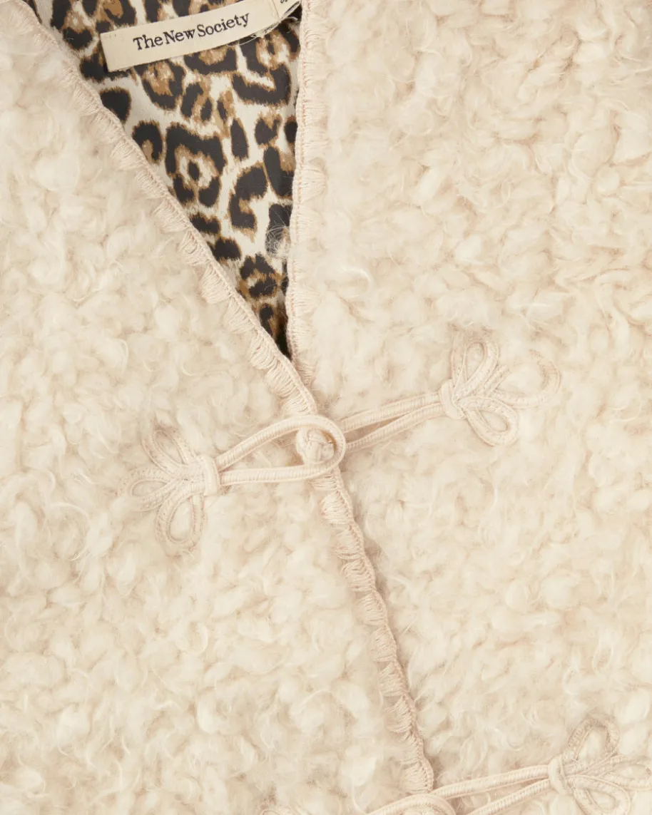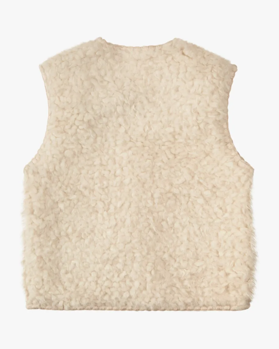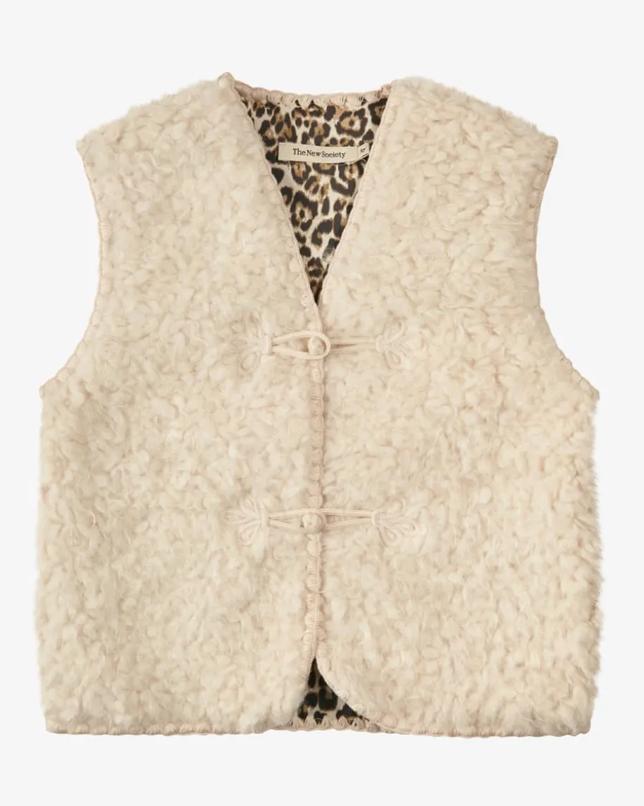 Ninette Fellweste für Mädchen von The New Society in Creme. Das Modell überzeugtmit weicher Fake-Fur-Verarbeitung, während die tonigen Verschlüsse und feinenStickereien den Look mit gemustertem Innenfutter gekonnt ergänzen.