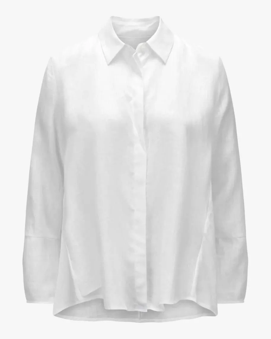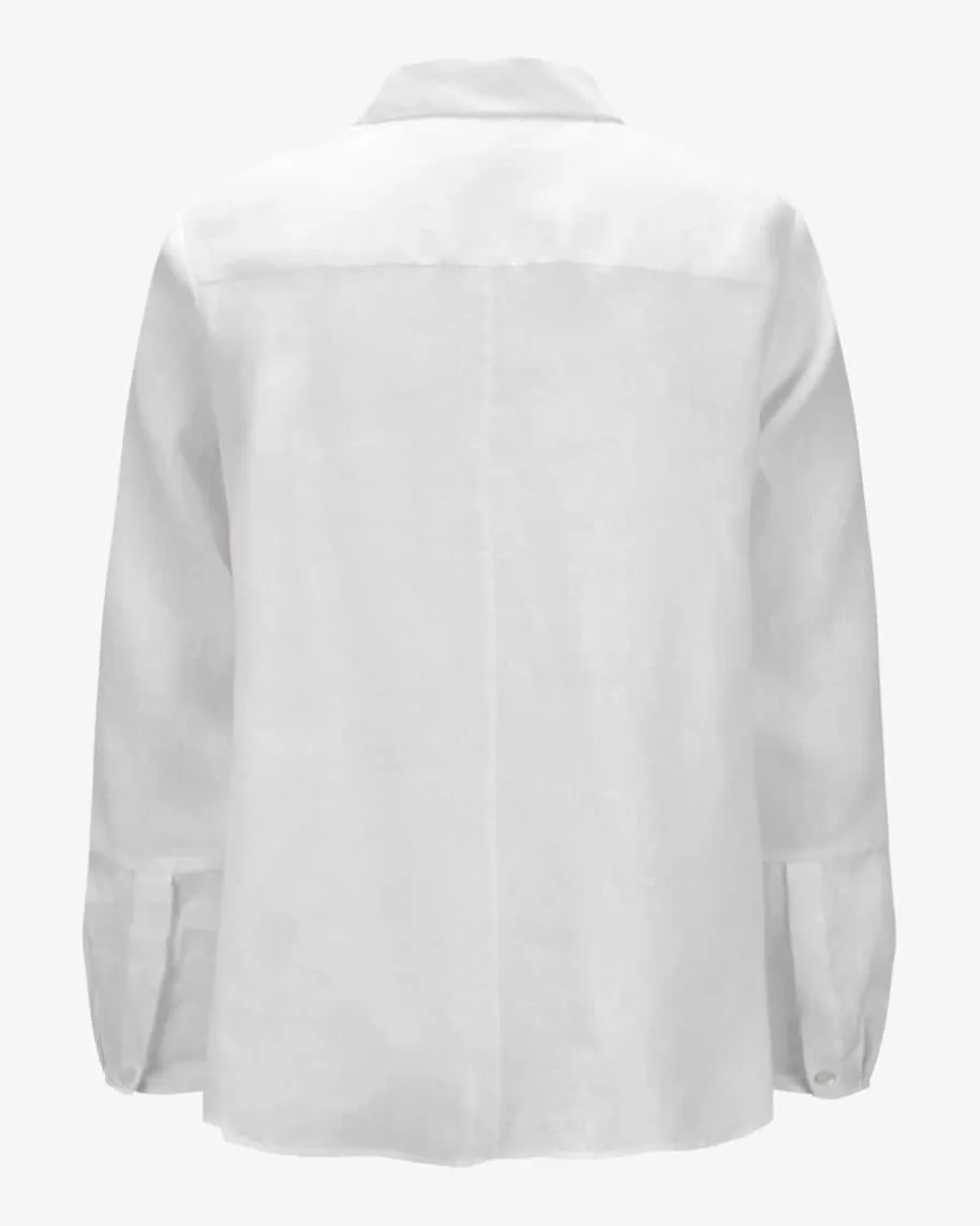 Nora Leinen-Hemdbluse für Damen von Robert Friedman in Weiß. Gefertigt aushochwertiger Leinen-Qualität, überzeugt das ausgestellte Modell mit seinerleichten wie auch kühlenden Eigenschaft. Die detailverliebten Elemente, die dasLabel auszeichnen, runden den sommerlichen Look modern ab.