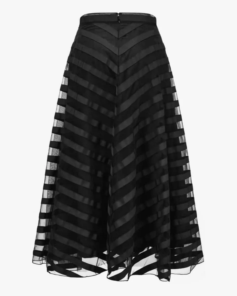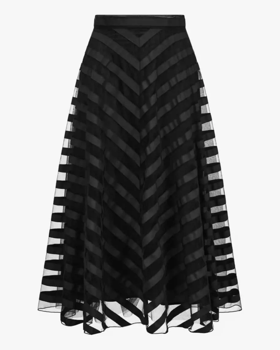 Nuance Rock für Damen von Parosh in Schwarz. Das Modell überzeugt dankmehrlagigem Design in semi-transparenter Aufmachung mit Streifen-Applikationenals femininer Dark-Romance-Favorit. Zugleich garantiert der separate Unterrockeinen blickdichten Look.