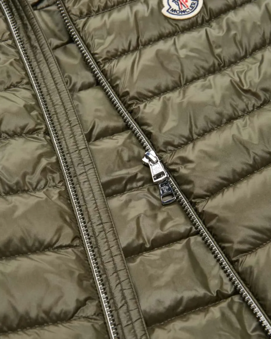 Orant Daunenweste für Herren von Moncler in Oliv. Denkt man an hochwertige,warme Daunenjacken, kommt einem unweigerlich das italienische TraditionslabelMoncler in den Sinn. Sportiv-maskulin überzeugt das changierende Modell imklassischen Stepp-Design, während die leichte Daunen-Feder-Füllung einenwärmenden Übergangs-Begleiter für vielseitige Lagen-Looks kreiert.