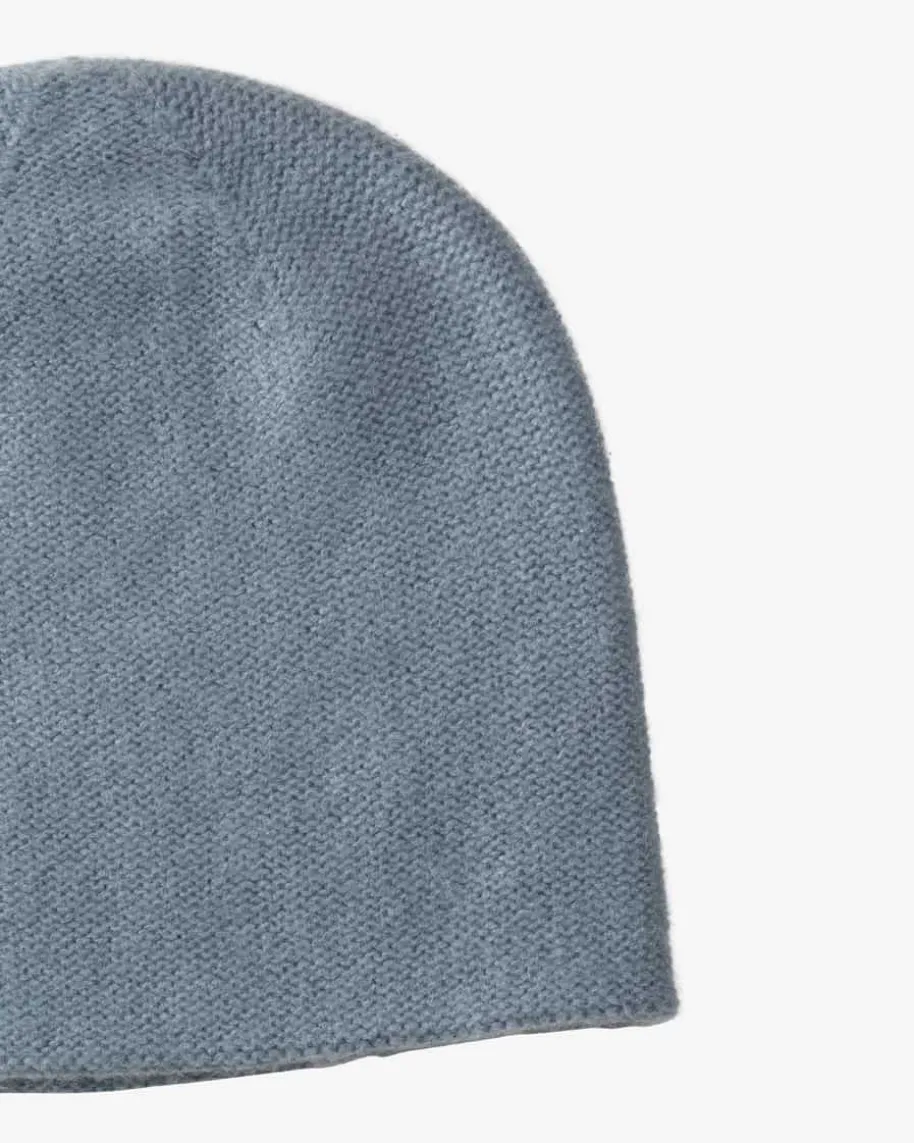 Oslo Cashmere-Mütze für Damen von Warm-Me in Rauchblau. Das Modell begeistertdank feiner Strick-Qualität und der Verwendung von edler Cashmere-Wolle. Daszeitlose Design macht die Mütze zum perfekten Accessoire für jede Gelegenheit.