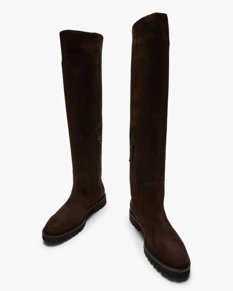 Overknee-Stiefel für Damen von LODENFREY in Dunkelbraun. Das Modell bestichtdurch die Verwendung von hochwertigem Veloursleder in stilvoller Aufmachung,während die leichte Vibram-Profilsohle sowie der hohe, geschlitzte Schaft einenmodischen Begleiter kreiert.