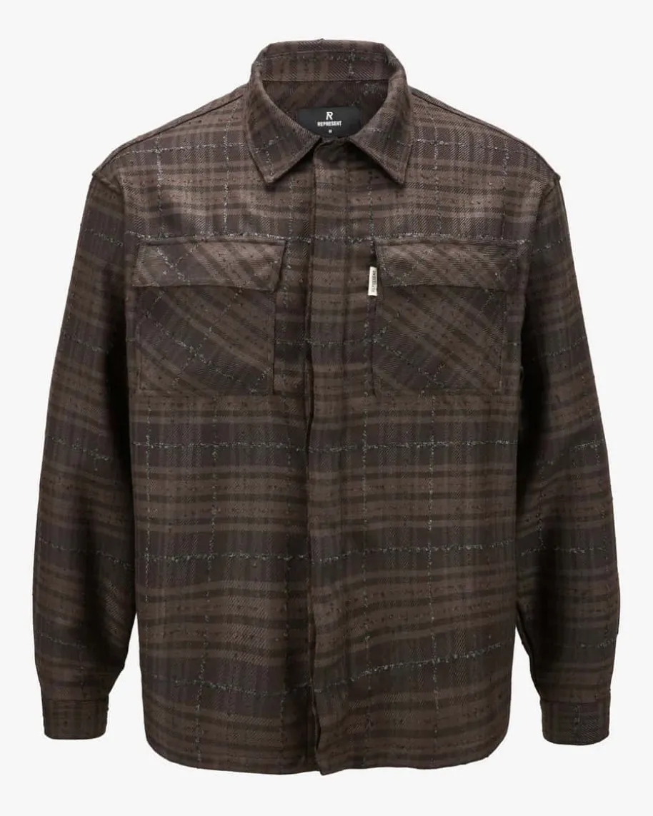 Overshirt für Herren von Represent in Dunkelbraun, Hellbraun und Schwarz.Während das fein strukturierten Karo-Dessin zusammen mit der legeren Passformeinen modischen Streetstyle-Look schafft, setzt die kontrastierende Logo-Naht amRücken charakteristische Akzente.
