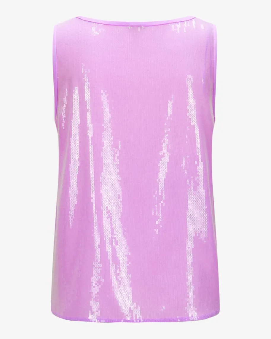 Paillettentop für Damen von Marc Cain in Lavendel. Das Modell präsentiert sichmitchangierender Pailletten-Qualität, die für einen changierenden Look sorgt – Einmodischer Begleiter für Hingucker-Styles.