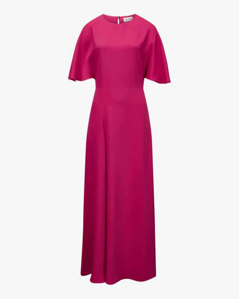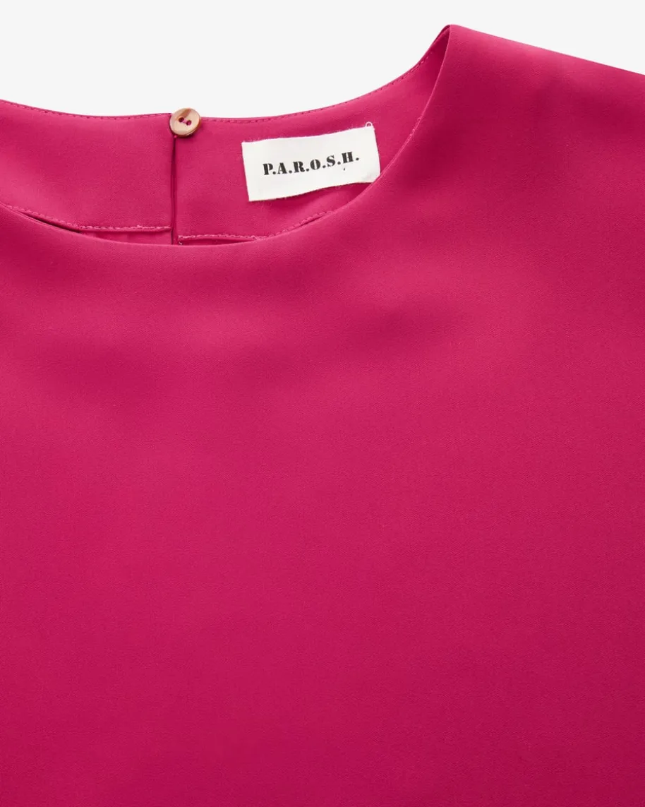 Panty Kleid für Damen von Parosh in Himbeere. Das Modell in femininer Aufmachungüberzeugt mit weiten Flügelarmeln und fließender Material-Qualität. Dieausgestellte Passform mit hohem Schlitz unterstreicht die elegante Silhouetteund rundet den femininen Style gekonnt ab.