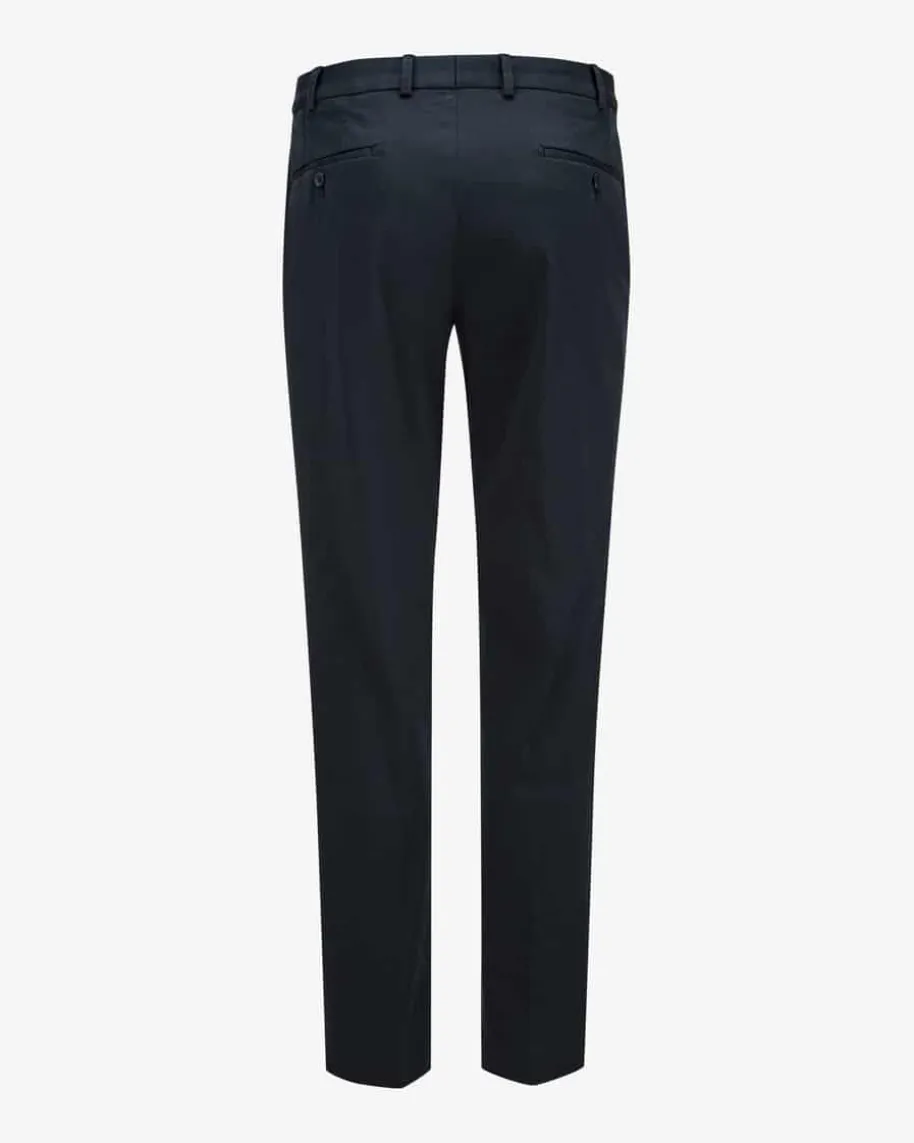 Parma Chino für Herren von Hiltl in Navy. Das zeitlos-maskuline Modell wirddurch klassische Details geprägt, während die elastische Baumwoll-Verarbeitungeinen hohen Tragekomfort garantiert.