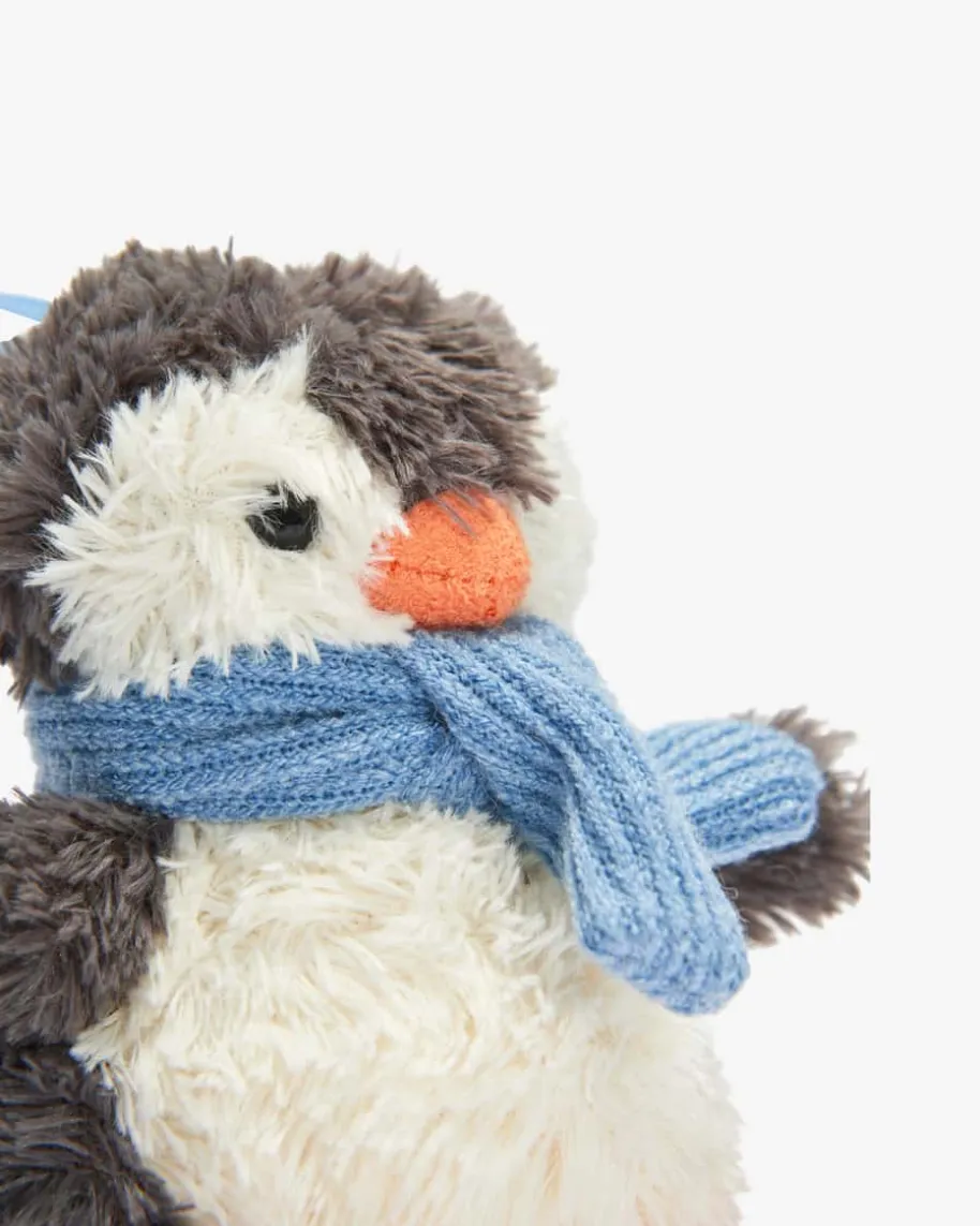 Peanut Penguin Decoration Plüschtier von Jellycat in Grau, Orange und Hellblau.Das Label, welches seit 1999 in London Kuscheltiere entwirft, begeistert durchdie Kombination aus hochwertigen Stoffen sowie süßen und kreativen Designs. Auchdieses Modell überzeugt mit seiner weichen Qualität und einer besondersangenehmen Haptik. Mit seinem winterlichen Design in kuscheliger Pinguin-Formmit gestricktem Schal wird es zum niedlichen Begleiter, das Kinderaugen zumLeuchten bringt.