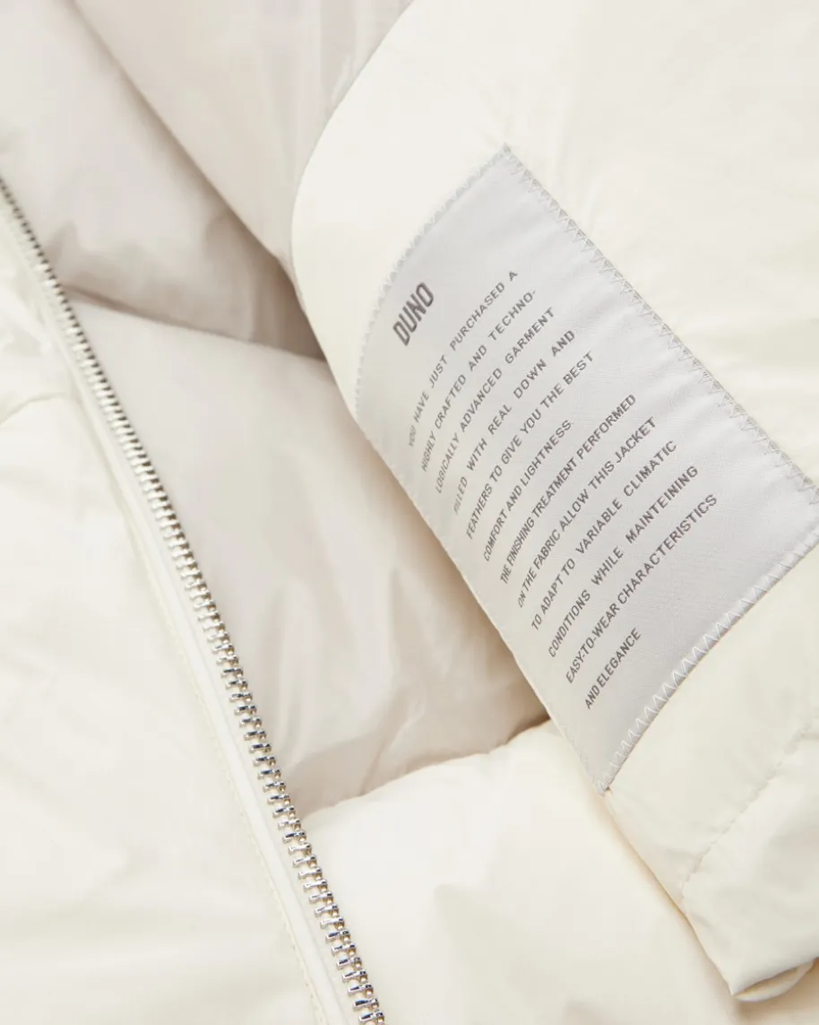 Peggie Aprica Daunenjacke für Damen von Duno in Ecru. Technische Stoffe treffenauf minimalistisches Design – modische Performancejacken mit stilvollem City-Charakter. Auch dieses Modell überzeugt dank Daunen-Feder-Füllung mit wärmendenTragemomenten, während das Rauten-Stepp-Dessin einen modernen Begleiter für diekalte Jahreszeit kreiert.