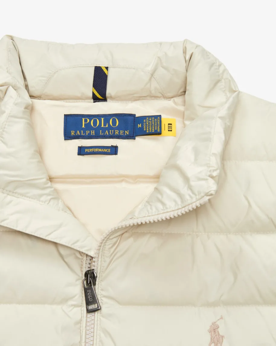 Performance Daunenweste für Herren von Polo Ralph Lauren inSand. Eine Ikone desamerikanischen Lifestyles – sportlich, preppy, klassisch.Dieses Modellüberzeugt mit wärmender Daunen-Feder-Füllung undwasserabweisender Eigenschaft,während die matt-changierende Stepp-Aufmachung einenmaskulinen Begleiter fürLayering-Looks schafft. Zugleich können Sie die Jacke dankder verstaubarenFunktion ideal mitnehmen.