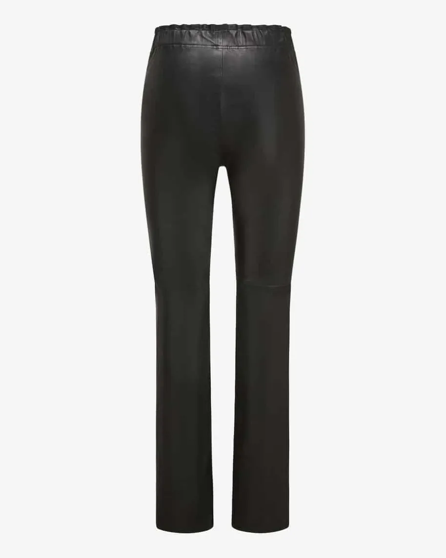 Philine Napp Lederhose für Damen von Iris von Arnim in Schwarz. Das Modell inhochwertigem Lammleder überzeugt mit angenehmen Tragemomenten dank derelastischen Eigenschaften, während die klassischen Details und die mattglänzende Optik das Gesamtbild harmonisch abrunden.