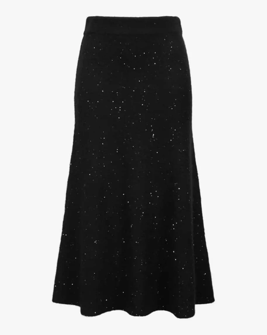 Picton Strickrock für Damen von Lu Ren in Schwarz. Dank der Verwendung vonhochwertigem Cashmere-Mix besticht das Modell mit weicher und elastischerStrick-Qualität, während die zarten Pailletten-Applikationen einen stilvollenFavoriten für Ihre Herbst-Winter-Garderobe schaffen.