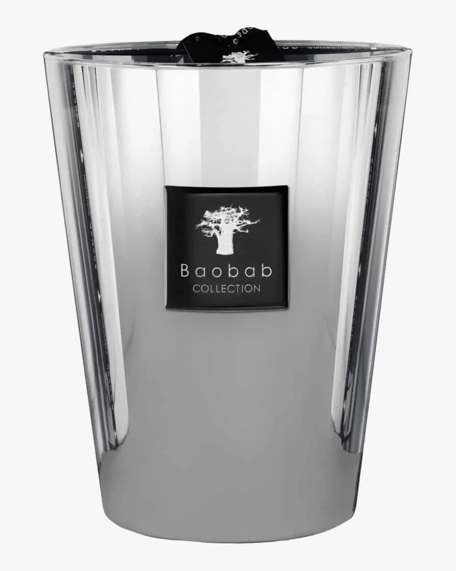 Platinum Kerze Von Baobab in Grau. Die Duftkerze Platinum ist das Wahrzeichender Marke. Ihr edles Glas lässt die Flammen durchflackern und verleiht IhremInterieur eine unvergleichliche Ausstrahlung, während die Kerze einen Duft mitfrischen Noten verströmt.