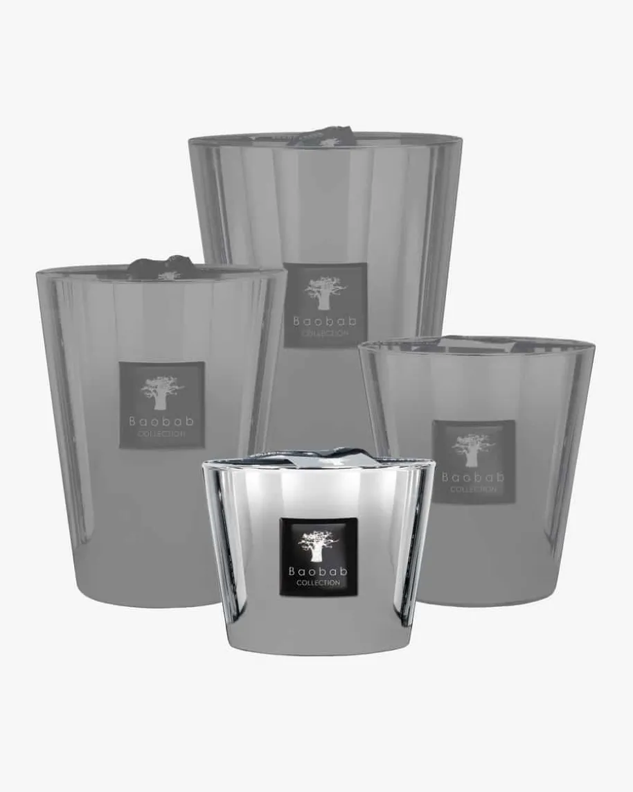 Platinum Kerze Von Baobab in Grau. Die Duftkerze Platinum ist das Wahrzeichender Marke. Ihr edles Glas lässt die Flammen durchflackern und verleiht IhremInterieur eine unvergleichliche Ausstrahlung, während die Kerze einen Duft mitfrischen Noten verströmt.
