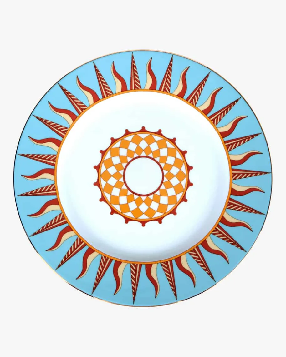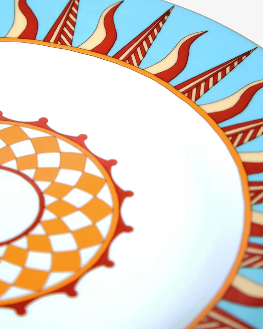 Platzteller von La DoubleJ in Blau, Rot und Gelb. Aus feinstem italienischemPorzellan gefertigt, präsentiert sich das Modell dank des handgefertigten 18-karätigen Goldrands in edler Aufmachung. Das auffällige und gleichzeitigminimalistische Ra-Design lässt den Teller zum kulinarischen Deko-Highlightavancieren.