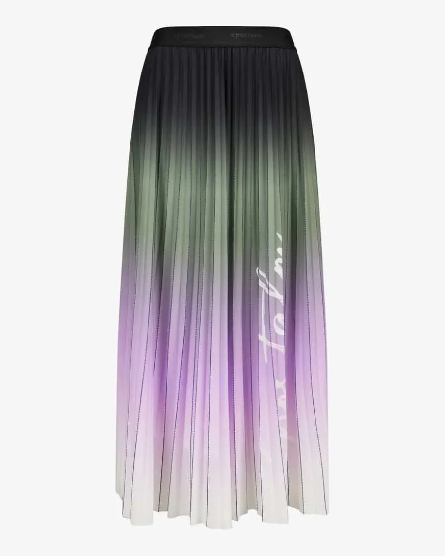 Pliseerock für Damen von Sportalm Emotion in Schwarz, Khaki, Flieder. Das Modellbegeistert mit romantischer Plissee-Aufmachung sowie modischen Farbverläufen,während der Logo-Gummibund sportive Akzente setzt und so einen raffinierten Lookkreiert.