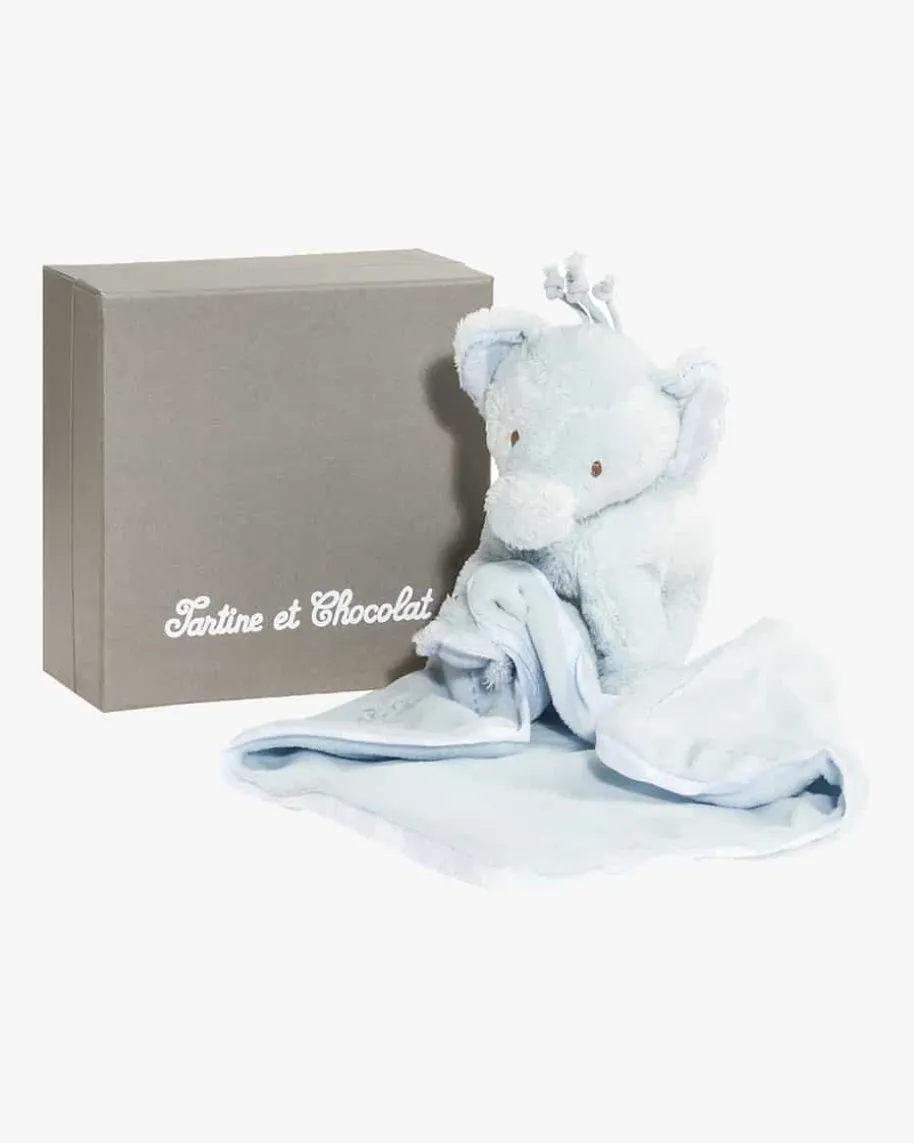 Ferdinand Plüschtier Elefant mit Tuch von Tartine et Chocolat in Hellblau.Ferdinand ist ein kuscheliger Spielgefährte ebenso für kleine wie für großeKinder. Mit seinem flauschigen Fell ist das Stofftier ein toller Schmusepartner.Ein an den Elefanten fixiertes Schmusetuch mit Logo-Stickerei und Paspelierungsowie die mit feinen Kunststoffperlen gefüllten Partien sorgen für viel Spaßbeim Kuscheln und Greifen.