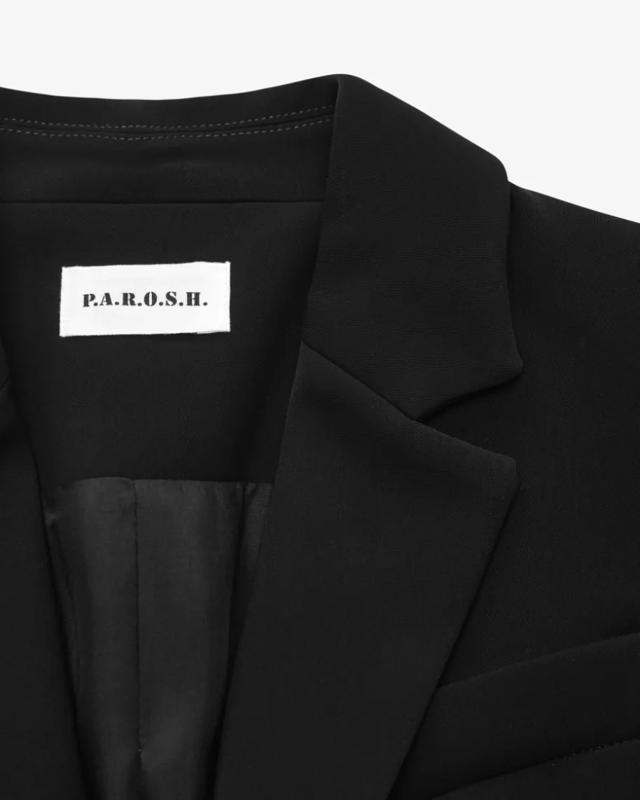 Pocker25 Blazer für Damen von Parosh in Schwarz. Die Marke steht für verspielteDesigns mit Vintage-Flair – farbenfrohe Prints, Glitzer und Retro-Vibes made inItaly. Das Modell in taillierter Passform und angenehmer Haptik, überzeugt mitcleaner Aufmachung und avanciert somit zu einem treuen Begleiter, der sichvielseitig kombinieren lässt.