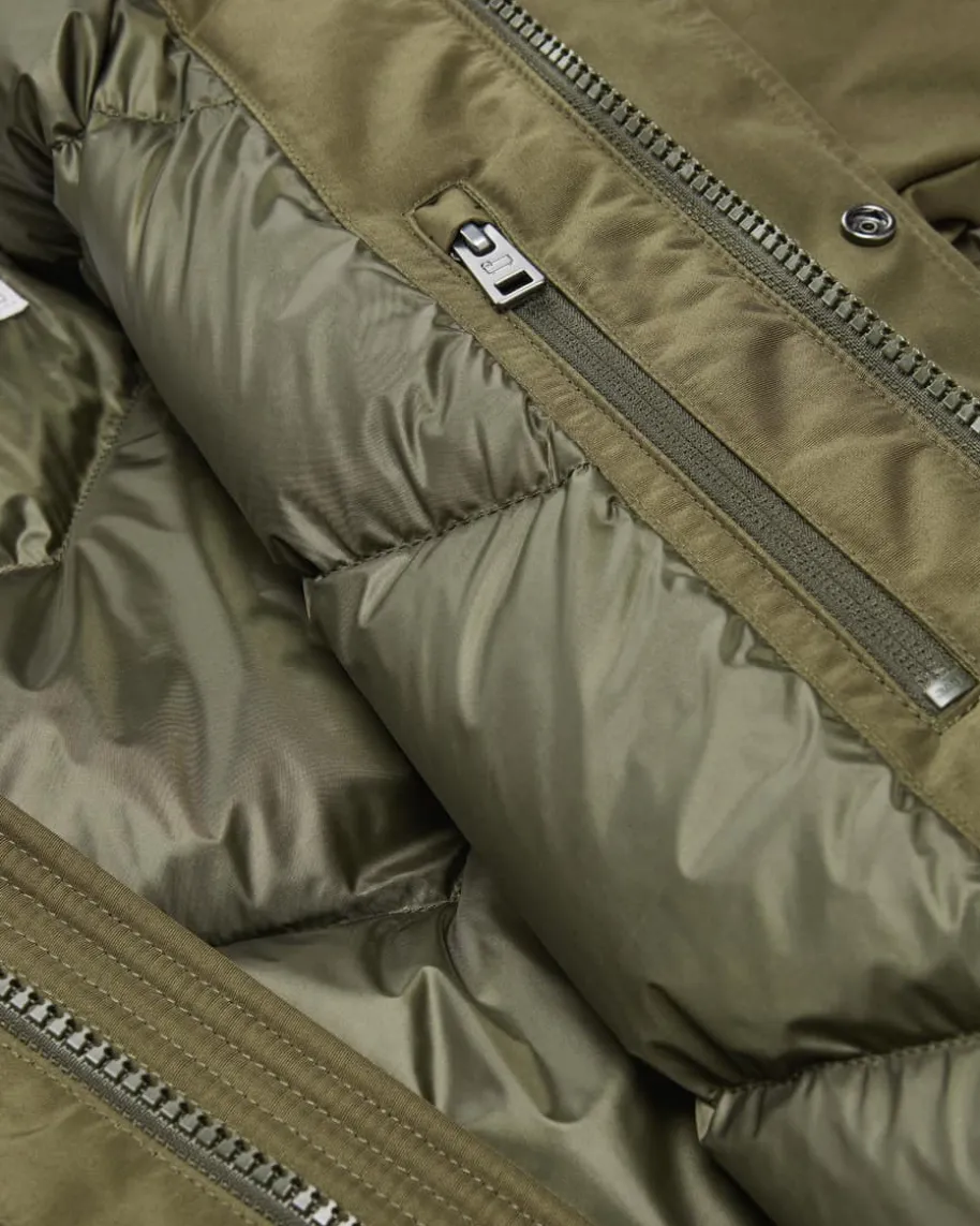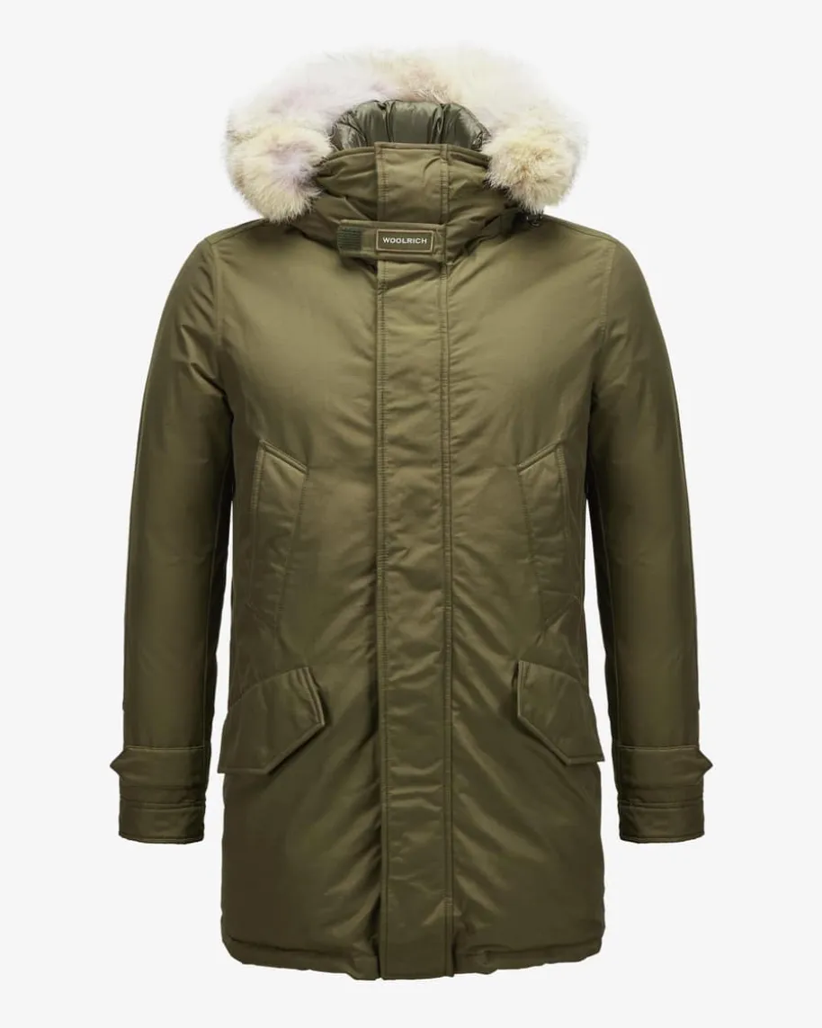 Daunenjacke für Herren von Woolrich in Oliv. 1830 von John Rich in Pennsylvaniagegründet, erfreute sich das Label damals schon großer Beliebtheit – vor allemim Outdoor-Bereich. Robuste funktionale Jacken, Parkas und Mäntel standen dabeiim Vordergrund und bilden, neben der dazugekommenen Freizeitmode, nach wie vorimmer noch den Mittelpunkt der vielseitigen Kollektionen von Woolrich. DasModell begeistert mit zeitlosem Design und wärmespendender Daunen-Füllung,während der abnehmbare Echtfellbesatz einen luxuriösen Charme verleiht.