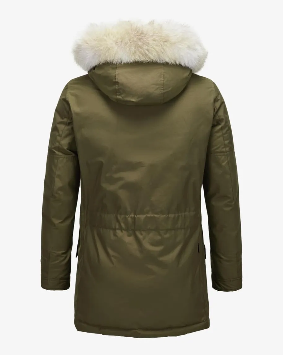 - Abnehmbare Kapuze mit abnehmbarem Echtfellbesatz