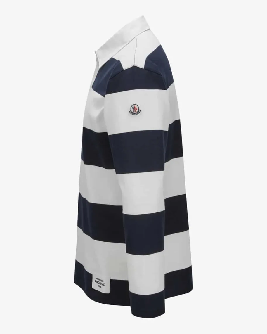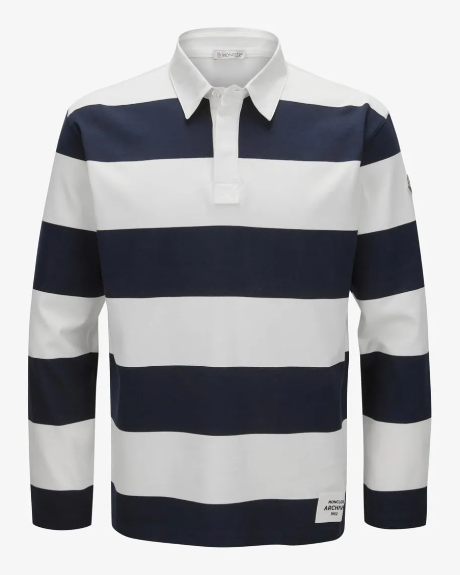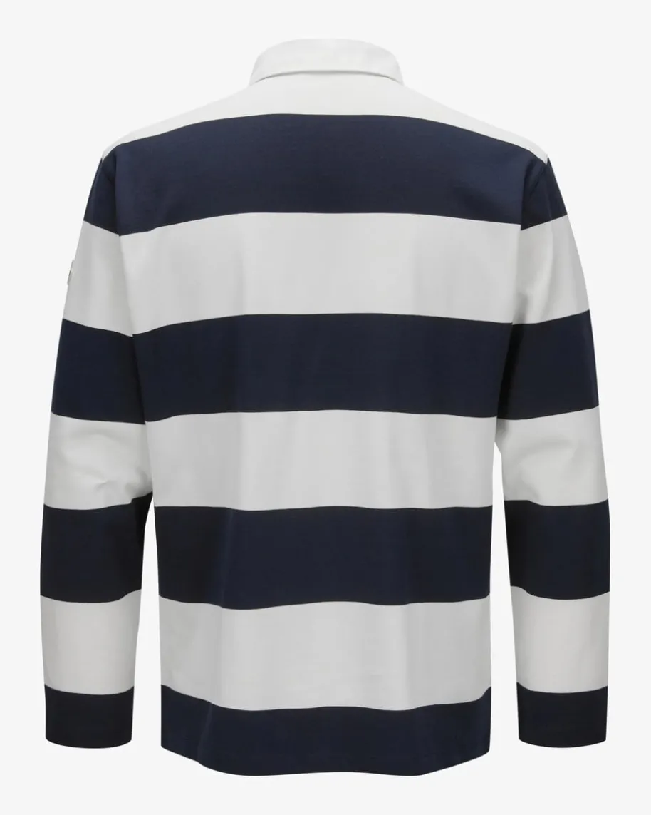 Polo-Shirt für Herren von Mocler in Navy und Weiß. Das Modell aus elastischerBaumwolle begeistert mit sportivem Blockstreifen-Design und klassischem Polo-Kragen. Die lockere Passform mit überschnittenen Schultern rundet den legerenStyle gekonnt ab.